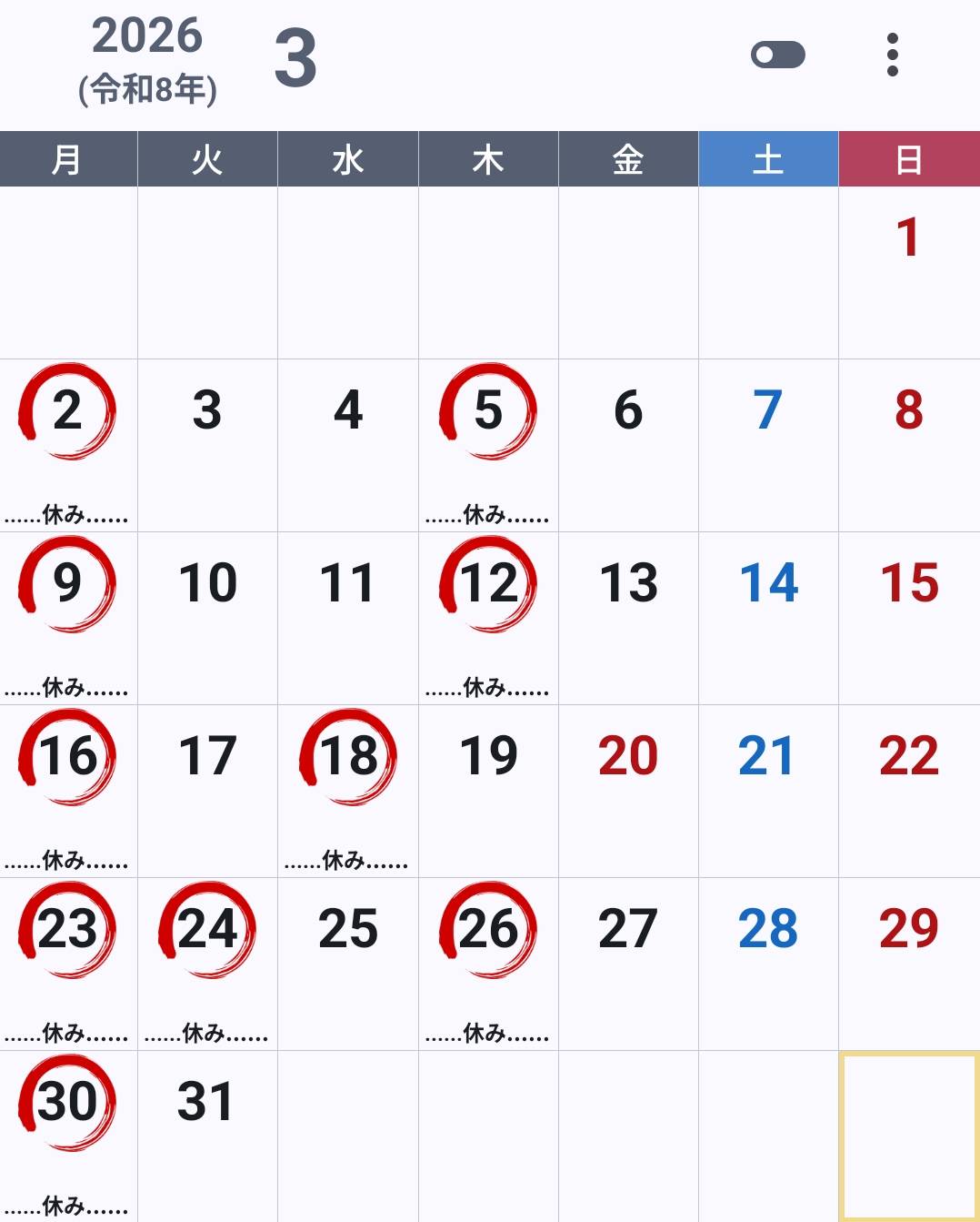 3月の営業スケジュールです。月曜、木曜定休に加え一部、祝日絡みの変則的なお休みとなります。宜しくお願い致します。※お得なクーポンは食べログページからどうぞ♪https://s.tabelog.com/hokkaido/A0101/A010204/1053692/top_amp/